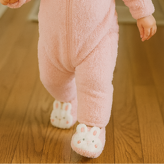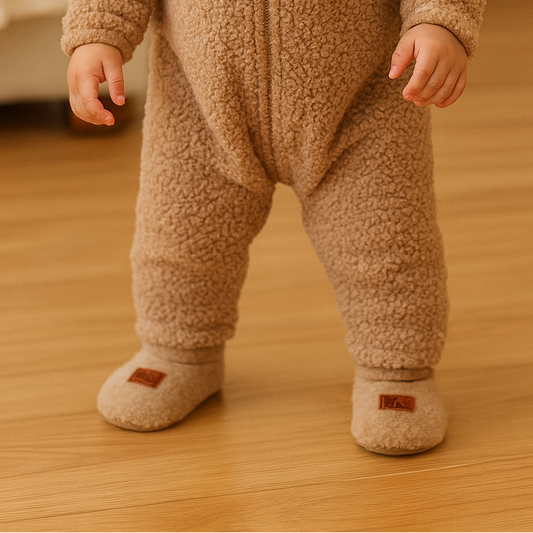 Des chaussons tout doux pour accompagner ses premiers pas en sécurité.